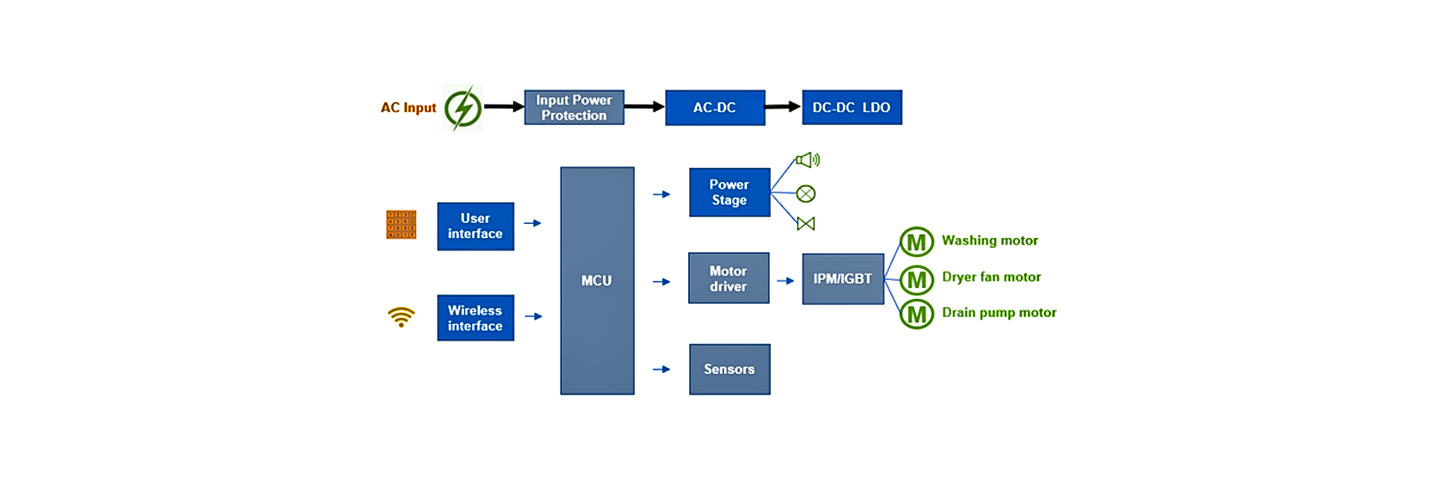 The washing machine has become an indispensable part of our daily lives, and with the development of artificial intelligence, we pursue a more scientific, efficient, and energy-efficient way of cleaning clothes. Topdiode provides electronic components that meet efficient power management, robust and reliable user interfaces, and low-noise, high-power-density motor control.